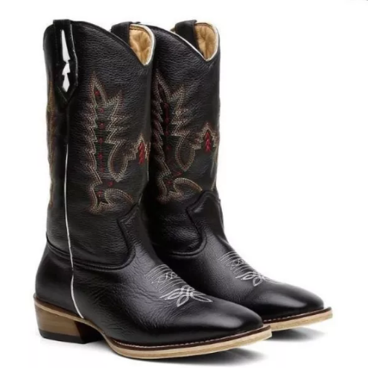 Apresentamos a nossa Bota Country Masculina com bico quadrado, feita de couro genuíno com padrão artesanal e materiais premium. Cada detalhe é cuidadosamente trabalhado, desde as costuras reforçadas até a fixação do solado com colagem, pregamento e costura. O formato ergonômico garante um ajuste perfeito para o máximo conforto, comodidade um calce ideal.