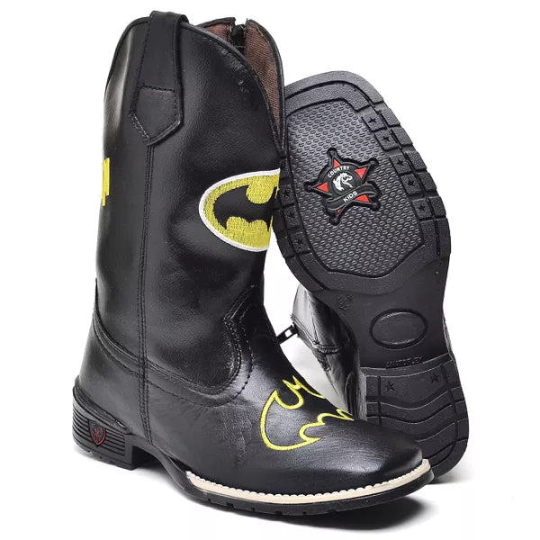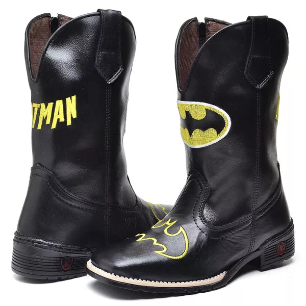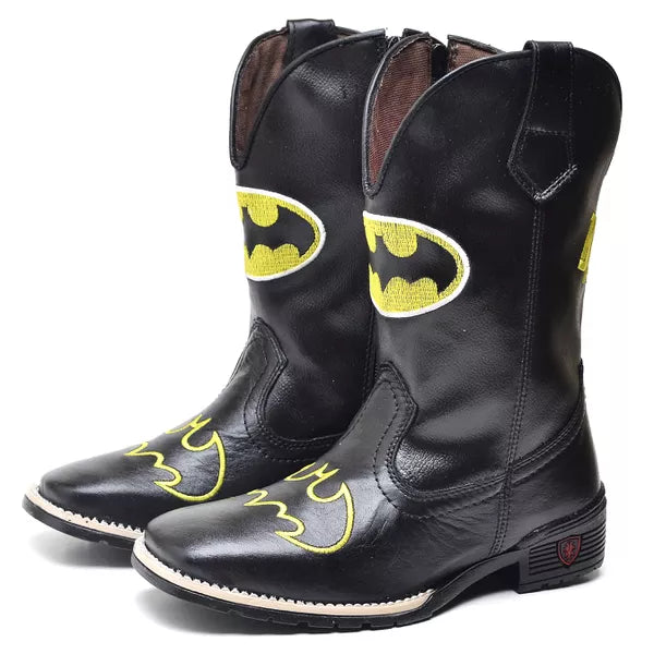 Deixe os pequenos super-heróis prontos para a ação com a Bota Texana Batman Infantil da VWA Boots. Com o icônico emblema do Batman em destaque, esta bota adiciona um toque de diversão aos looks dos pequenos. Feita com materiais de alta qualidade, oferece durabilidade e proteção para os pés em todas as atividades. Ideal para os pequenos que desejam mostrar seu amor pelo Batman em grande estilo.