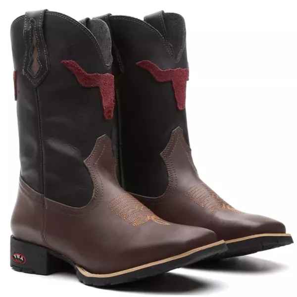 Apresentamos a nossa Bota Country Masculina com bico quadrado, feita de couro genuíno com padrão artesanal e materiais premium. Cada detalhe é cuidadosamente trabalhado, desde as costuras reforçadas até a fixação do solado com colagem, pregamento e costura. O formato ergonômico garante um ajuste perfeito para o máximo conforto, proporcionando um calce ideal.