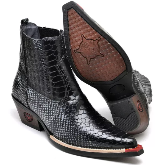 Bota Texana Cano Curto Bico Fino Brandit Jacaré Preto Masculino