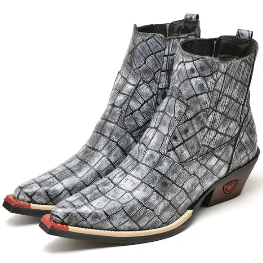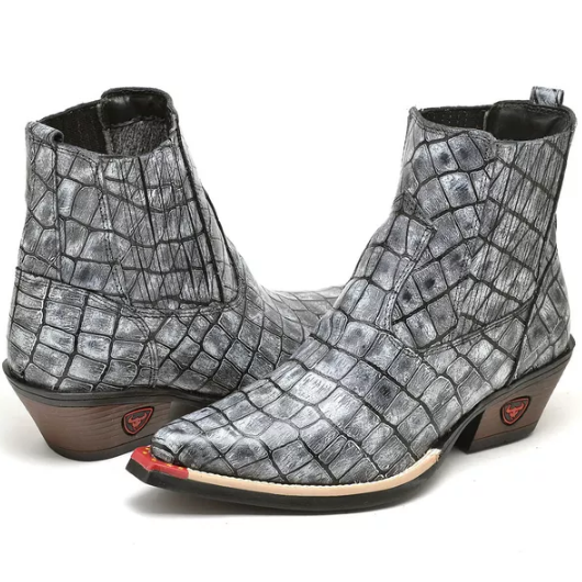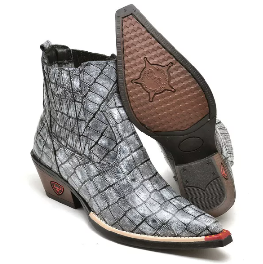 Bota Texana Cano Curto Bico Fino Brandit Croco Cinza Masculino