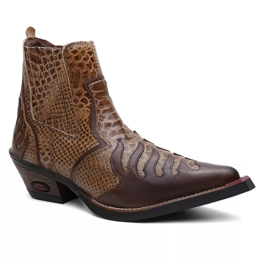 Bota Texana Cano Curto Bico Fino Brandit Jacaré Verniz Masculino