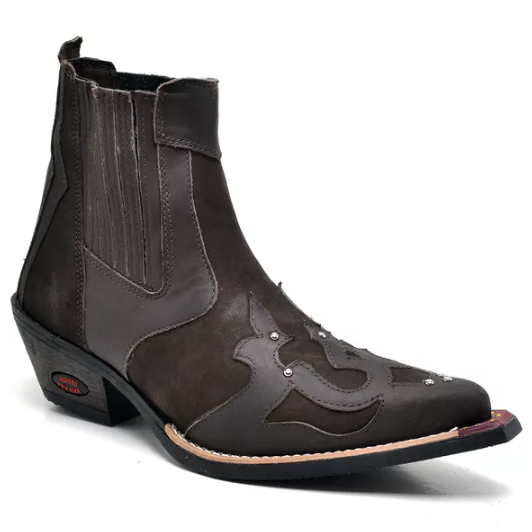 Apresentamos a nossa Botina Country Masculina com bico fino, feita de couro genuíno com padrão artesanal e materiais premium. Cada detalhe é cuidadosamente trabalhado, desde as costuras reforçadas até a fixação do solado com colagem, pregamento e costura. O formato ergonômico garante um ajuste perfeito para o máximo conforto, proporcionando um calce ideal.