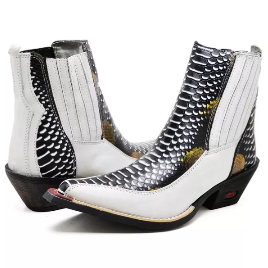 Bota Texana Cano Curto Bico Fino Brandit Jacaré Colorido Com Nobuck Gelo Masculino