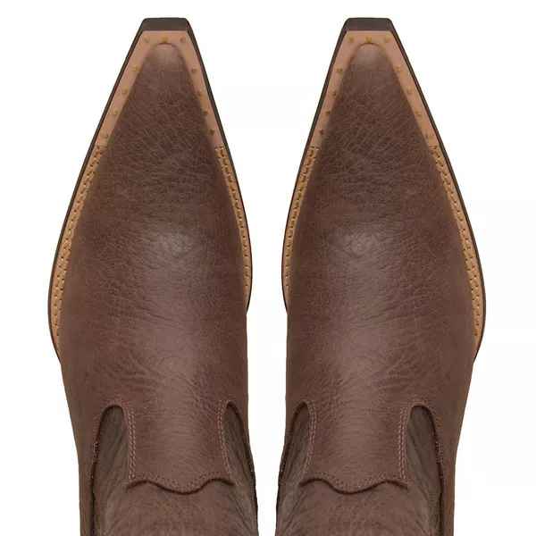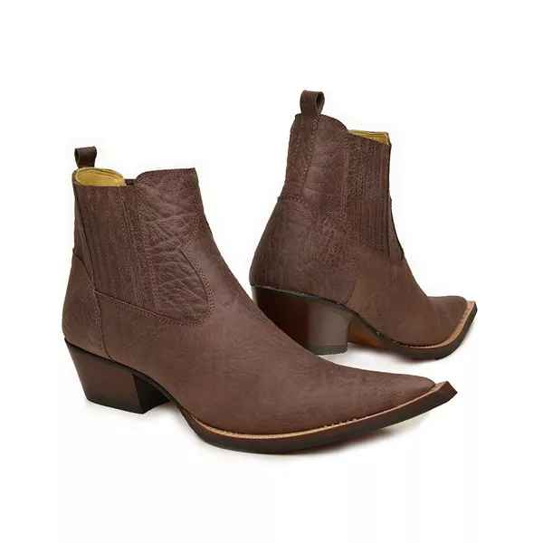 Apresentamos a nossa Botina Country Masculina com bico fino, feita de couro genuíno com padrão artesanal e materiais premium. Cada detalhe é cuidadosamente trabalhado, desde as costuras reforçadas até a fixação do solado com colagem, pregamento e costura. O formato ergonômico garante um ajuste perfeito para o máximo conforto, proporcionando um calce ideal.