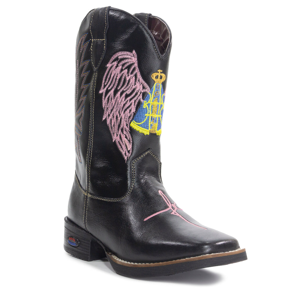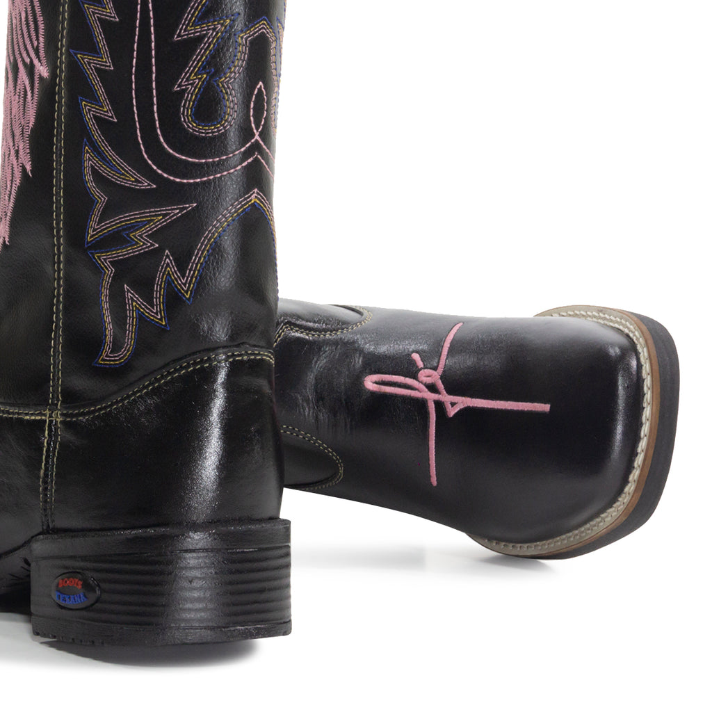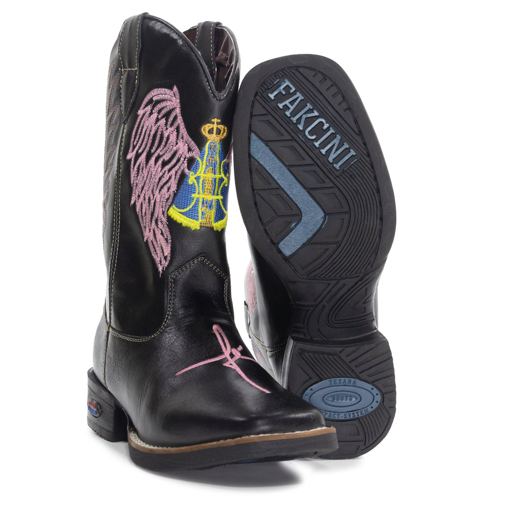 Bota Texana Fé Rosa Cano em Couro Ecológico Feminina