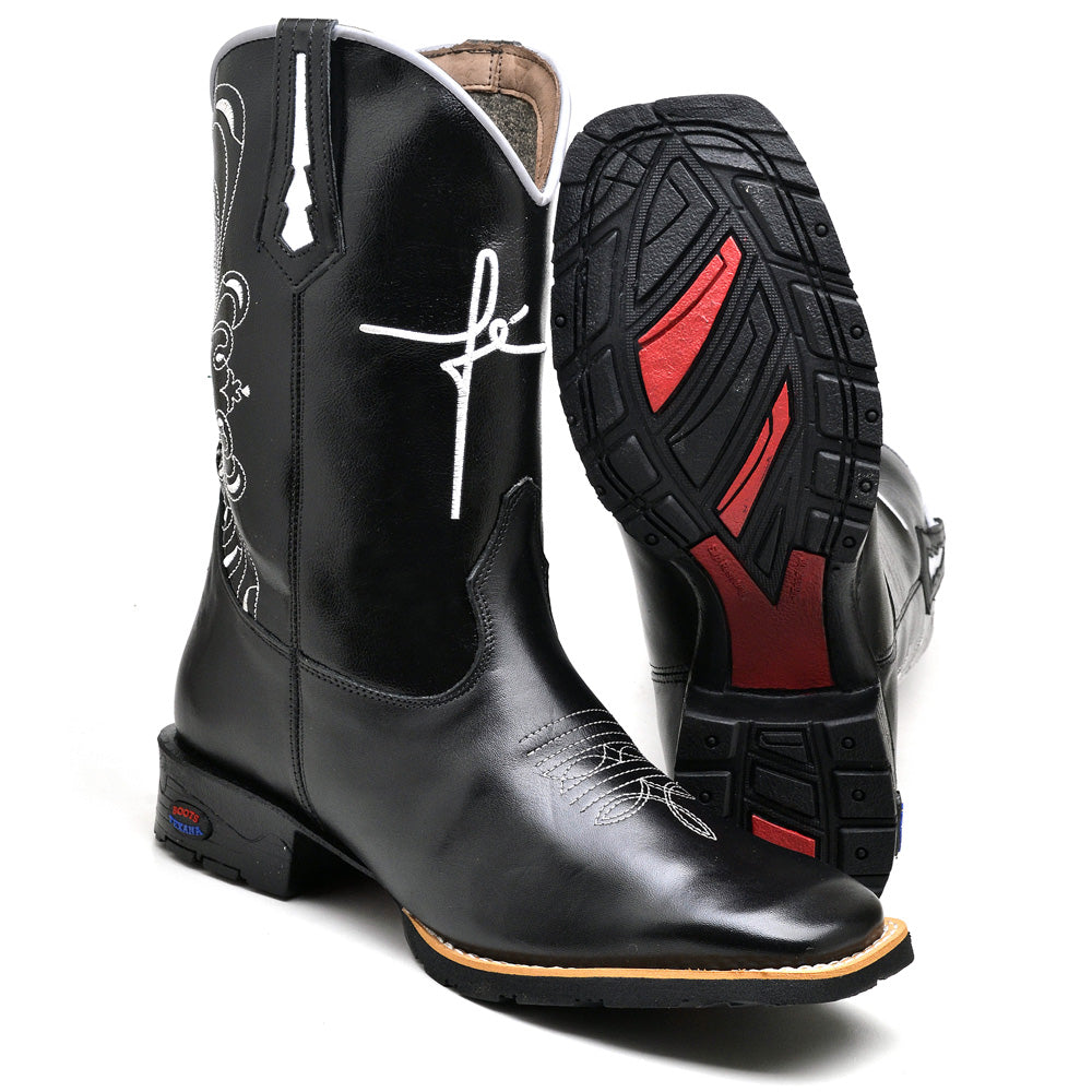 Apresentamos a nossa Bota Country Masculino com bico quadrado, com o cano feita de couro ecologico com padrão artesanal e materiais premium. Cada detalhe é cuidadosamente trabalhado, desde as costuras reforçadas até a fixação do solado com colagem, pregamento e costura. O formato ergonômico garante um ajuste perfeito para o máximo conforto, proporcionando um calce ideal.