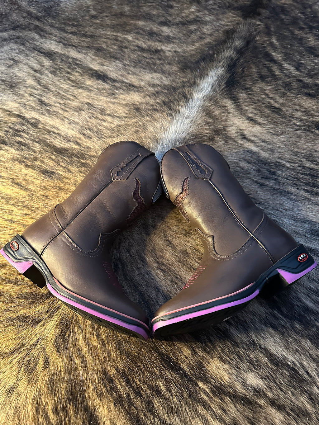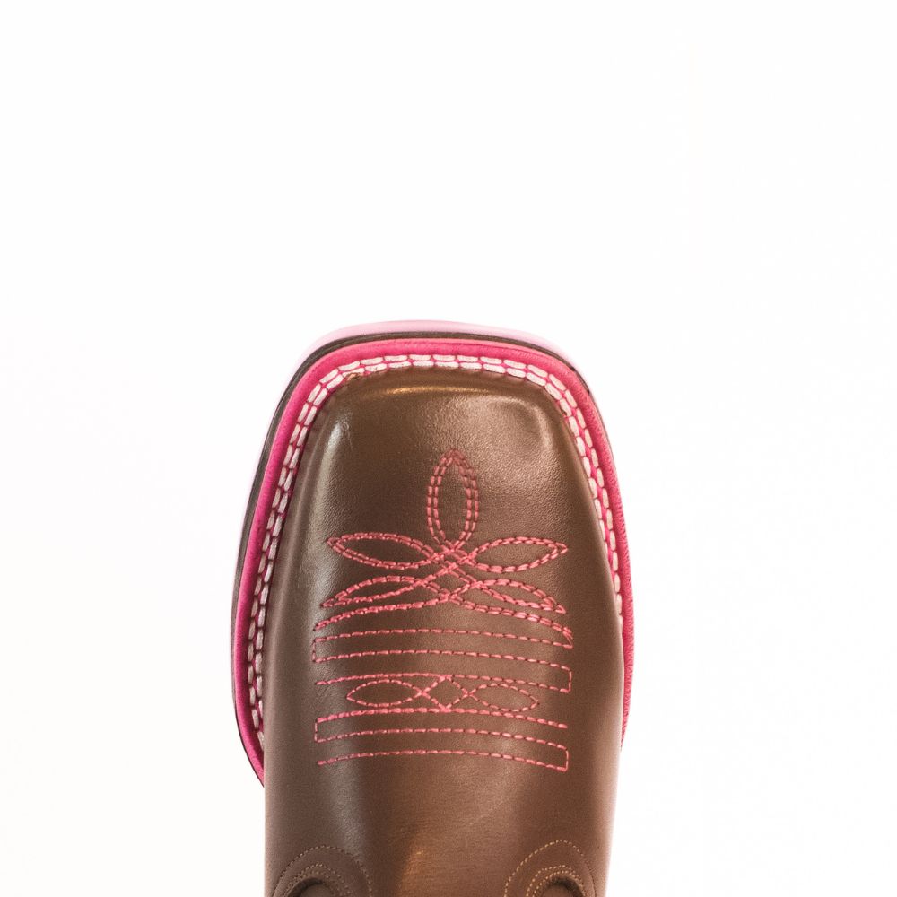Bota Texana Feminina Boi Brilhante Rosa Bico Quadrado