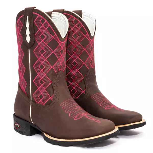 Apresentamos a nossa Bota Country Feminina com bico quadrado, feita de couro genuíno com padrão artesanal e materiais premium. Cada detalhe é cuidadosamente trabalhado, desde as costuras reforçadas até a fixação do solado com colagem, pregamento e costura. O formato ergonômico garante um ajuste perfeito para o máximo conforto, comodidade um calce ideal.
