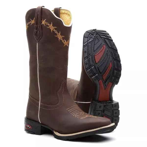 Apresentamos a nossa Bota Country Feminina com bico quadrado, feita de couro genuíno com padrão artesanal e materiais premium. Cada detalhe é cuidadosamente trabalhado, desde as costuras reforçadas até a fixação do solado com colagem, pregamento e costura. O formato ergonômico garante um ajuste perfeito para o máximo conforto, comodidade um calce ideal.