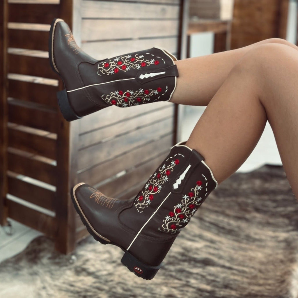 Bota Texana Feminina Florzinha Bico Quadrado