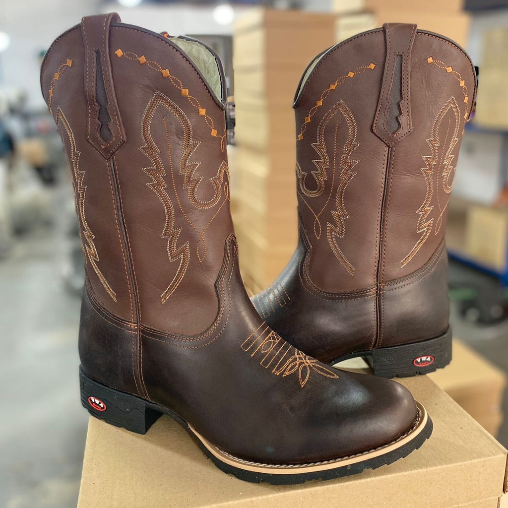 Apresentamos a nossa Bota Country Masculina com bico redondo, feita de couro genuíno com padrão artesanal e materiais premium. Cada detalhe é cuidadosamente trabalhado, desde as costuras reforçadas até a fixação do solado com colagem, pregamento e costura. O formato ergonômico garante um ajuste perfeito para o máximo conforto, proporcionando um calce ideal.