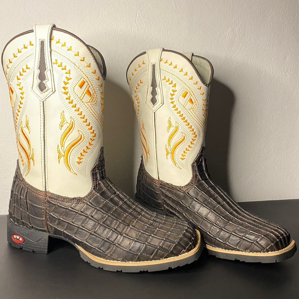 Apresentamos a nossa Bota Country Masculina com bico quadrado, feita de couro genuíno com padrão artesanal e materiais premium. Cada detalhe é cuidadosamente trabalhado, desde as costuras reforçadas até a fixação do solado com colagem, pregamento e costura. O formato ergonômico garante um ajuste perfeito para o máximo conforto, proporcionando um calce ideal.