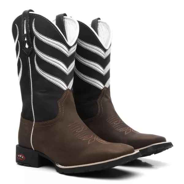 Apresentamos a nossa Bota Country Masculina com bico quadrado, feita de couro genuíno com padrão artesanal e materiais premium. Cada detalhe é cuidadosamente trabalhado, desde as costuras reforçadas até a fixação do solado com colagem, pregamento e costura. O formato ergonômico garante um ajuste perfeito para o máximo conforto, proporcionando um calce ideal.