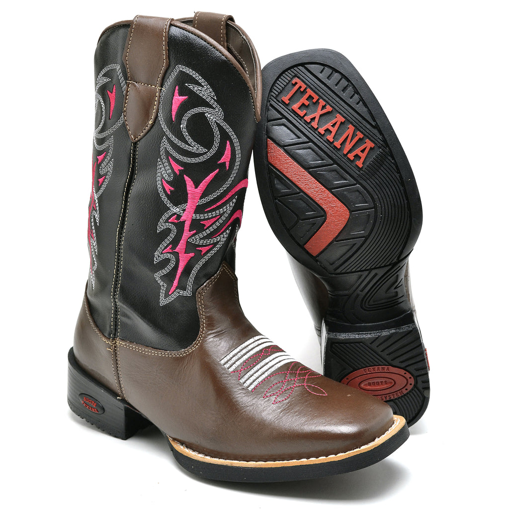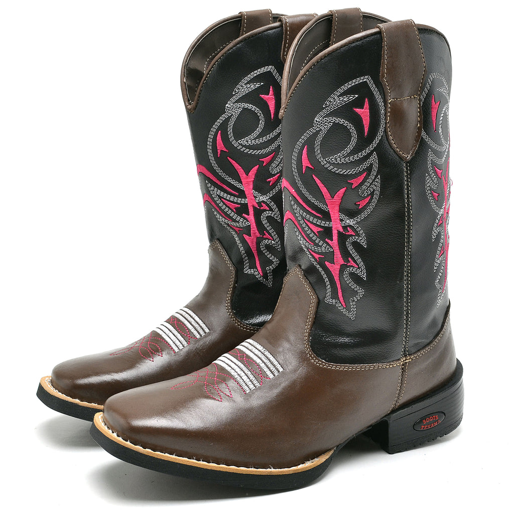 Apresentamos a nossa Bota Country Feminina com bico quadrado, com o cano feita de couro ecologico com padrão artesanal e materiais premium. Cada detalhe é cuidadosamente trabalhado, desde as costuras reforçadas até a fixação do solado com colagem, pregamento e costura. O formato ergonômico garante um ajuste perfeito para o máximo conforto, proporcionando um calce ideal.