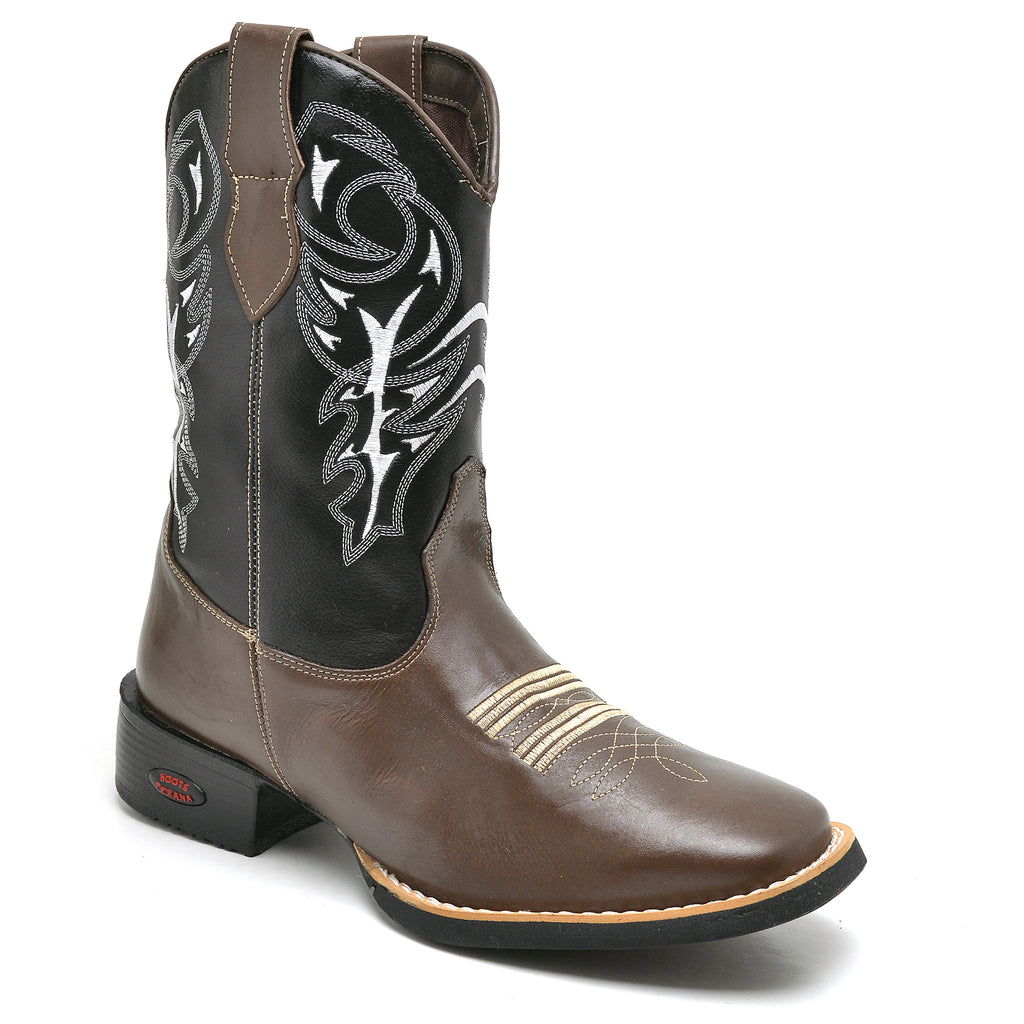 Apresentamos a nossa Bota Country Masculin com bico quadrado, com o cano feita de couro ecologico com padrão artesanal e materiais premium. Cada detalhe é cuidadosamente trabalhado, desde as costuras reforçadas até a fixação do solado com colagem, pregamento e costura. O formato ergonômico garante um ajuste perfeito para o máximo conforto, proporcionando um calce ideal.