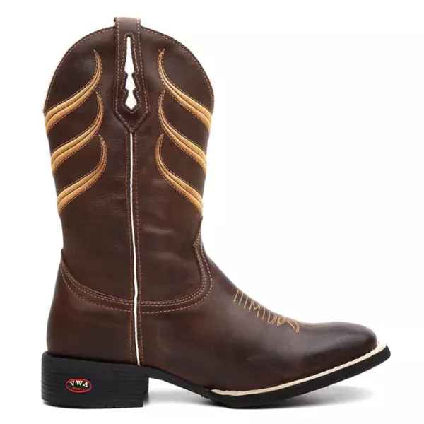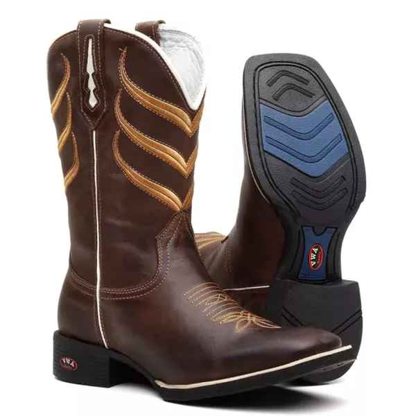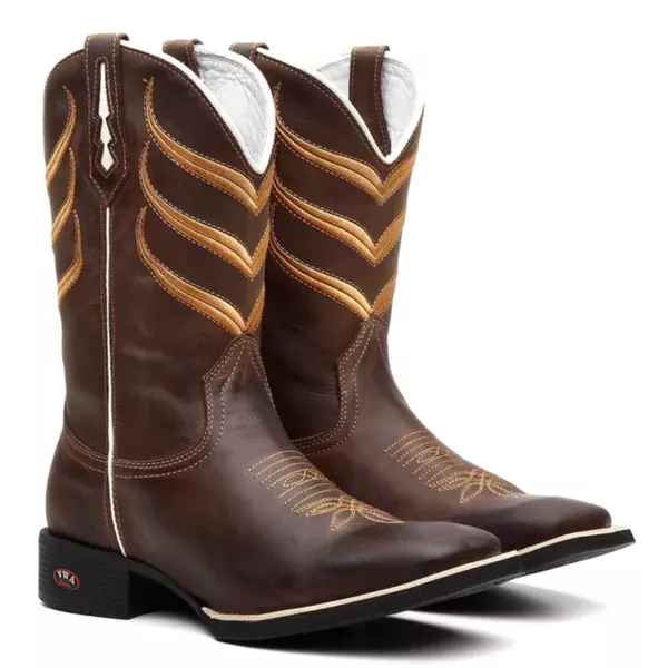 Apresentamos a nossa Bota Country Masculina com bico quadrado, feita de couro genuíno com padrão artesanal e materiais premium. Cada detalhe é cuidadosamente trabalhado, desde as costuras reforçadas até a fixação do solado com colagem, pregamento e costura. O formato ergonômico garante um ajuste perfeito para o máximo conforto, proporcionando um calce ideal.