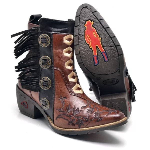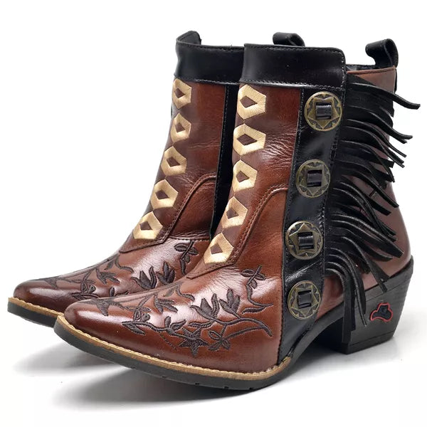 Botina Texana Feminina Semi Cromo Telha